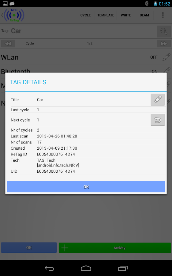 Nfc tools is an app which allows you to read, write and program tasks on your nfc tags and other rfid compatible chips.